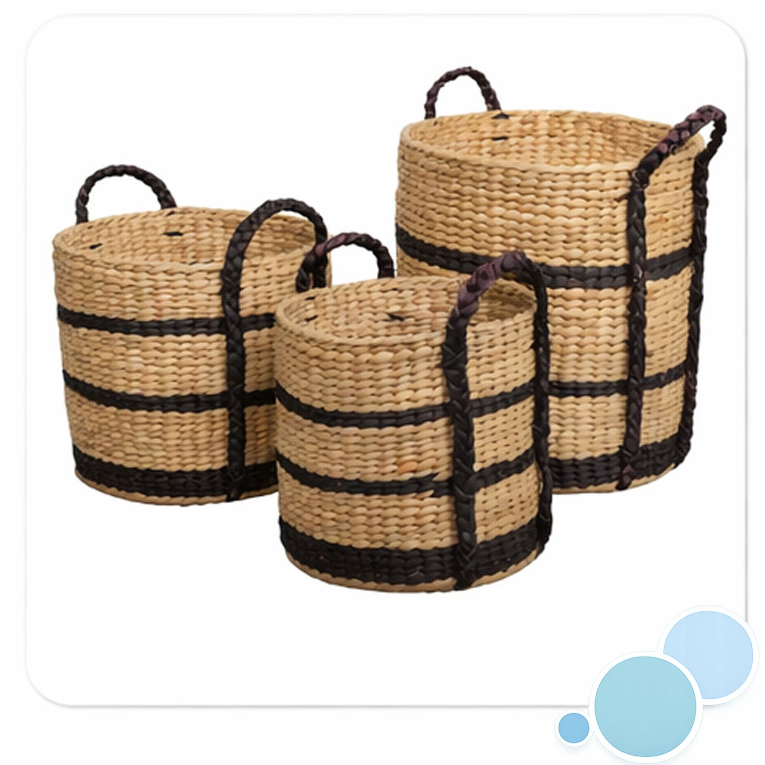 Astor Bohemian Farmhouse Handwoven Water Hyacinth Nesting Storage Baskets with Wood Handles