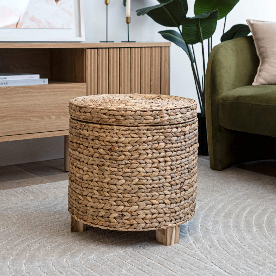 Whether your home is modern and minimalist or cozy coastal, this woven stool is the perfect accent. Made from handwoven water hyacinth, it has a removable lid with storage space inside. The sturdy frame makes it ideal for extra seating in the living room or bedroom.