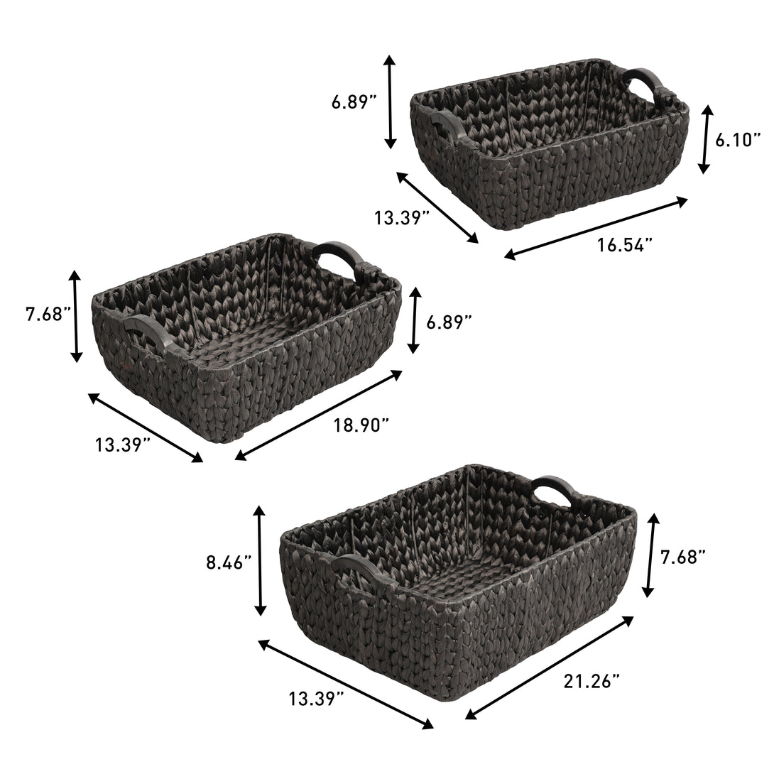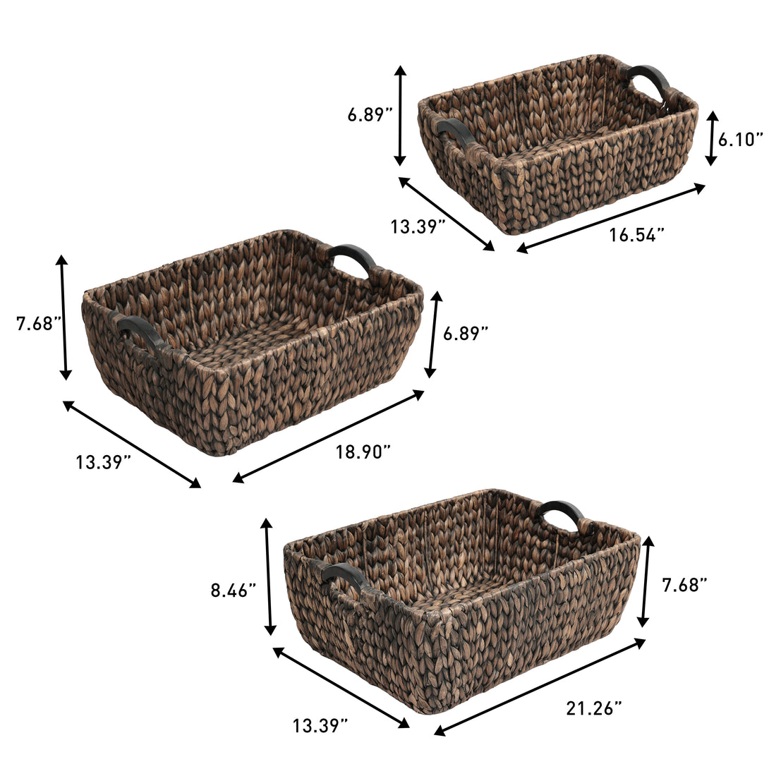 Astor Bohemian Farmhouse Handwoven Water Hyacinth Nesting Storage Baskets with Wood Handles