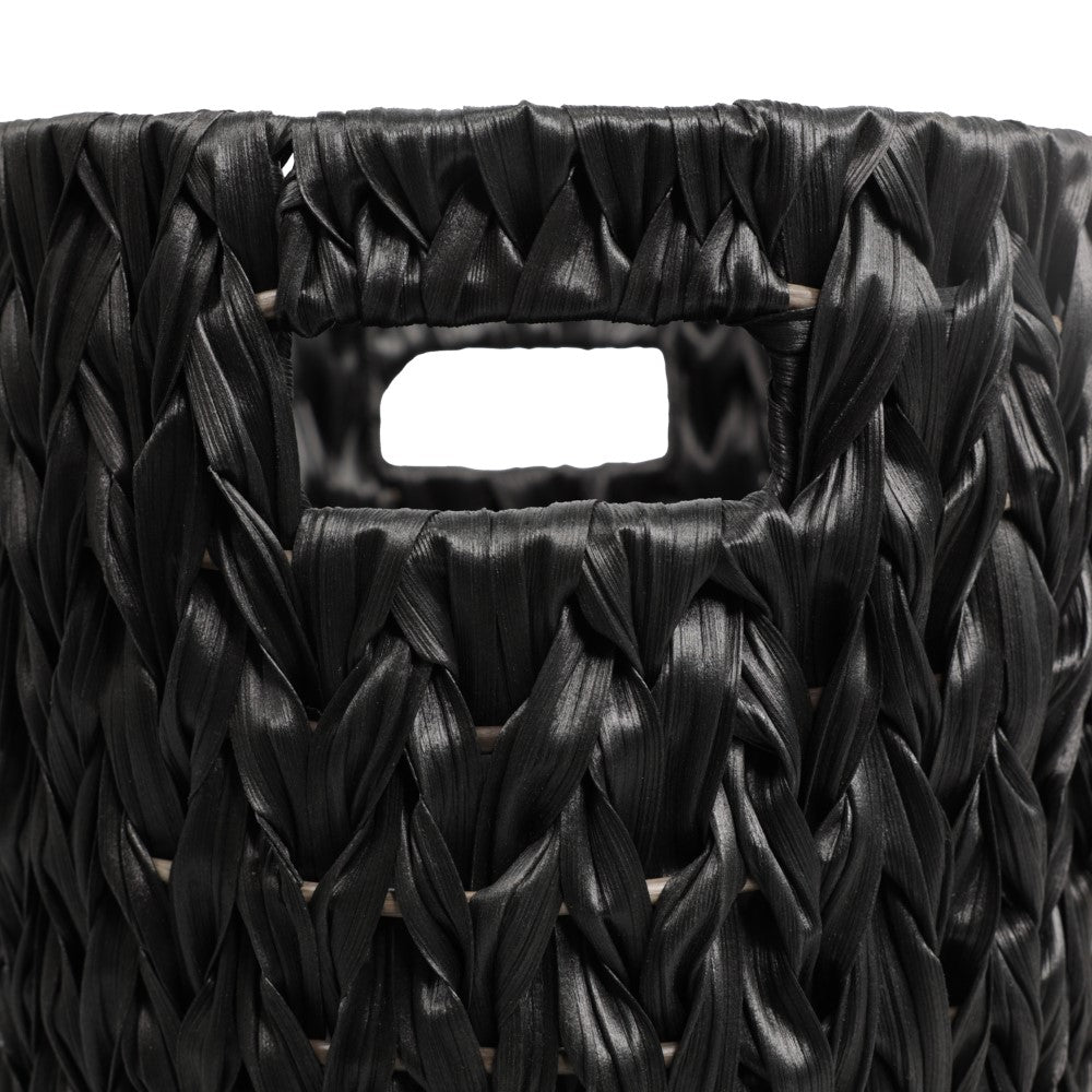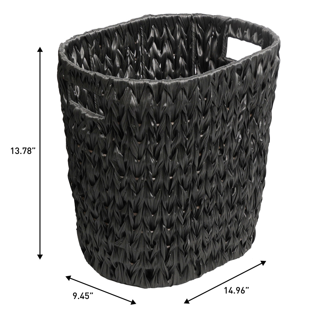 This set of wastebaskets offers a balance of organic texture and durable structure, making them both stylish and reliable. Handwoven from polypropylene resin over a strong metal frame, they are resistant to wear while retaining a natural, artisanal look. The oval silhouette with integrated side cutouts makes handling easy and adds a sleek, modern detail to everyday functionality.