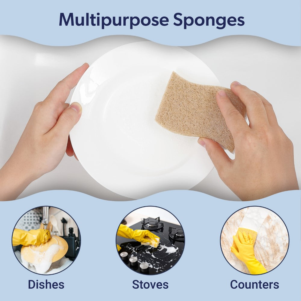 These scrubbing sponges combine the strength of natural sisal hemp fibers with the absorbency of wood pulp for a balanced cleaning solution. The ergonomic S-shape makes handling comfortable while maximizing scrubbing efficiency across multiple surfaces. Designed for durability and sustainability, these sponges offer everyday convenience with an eco-friendly touch.