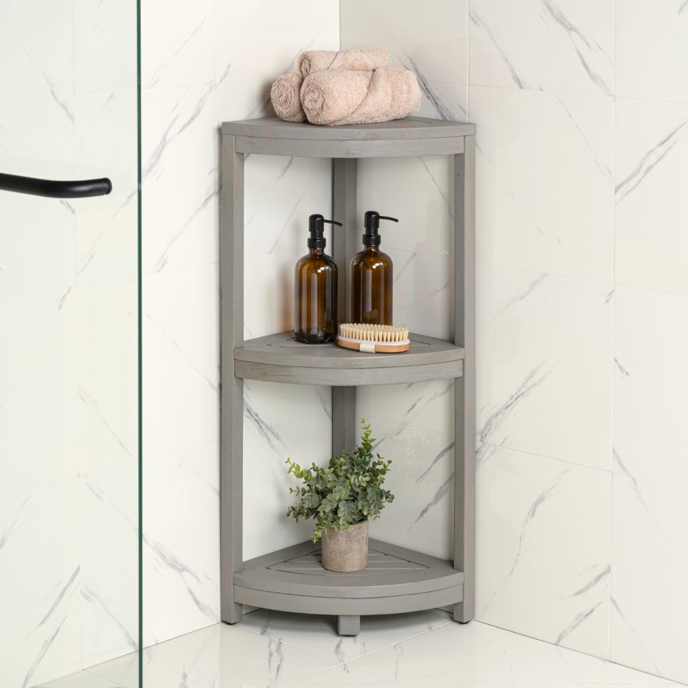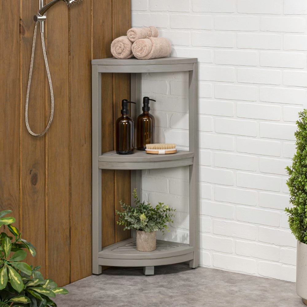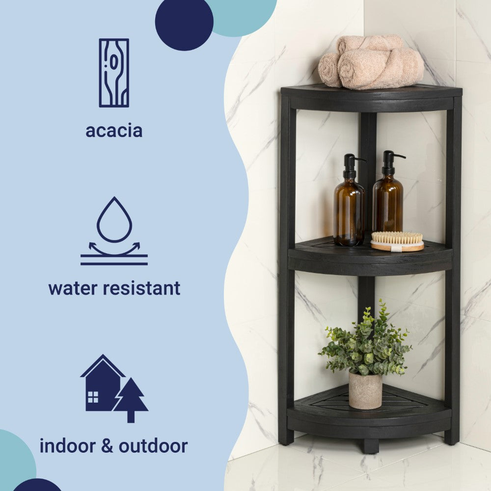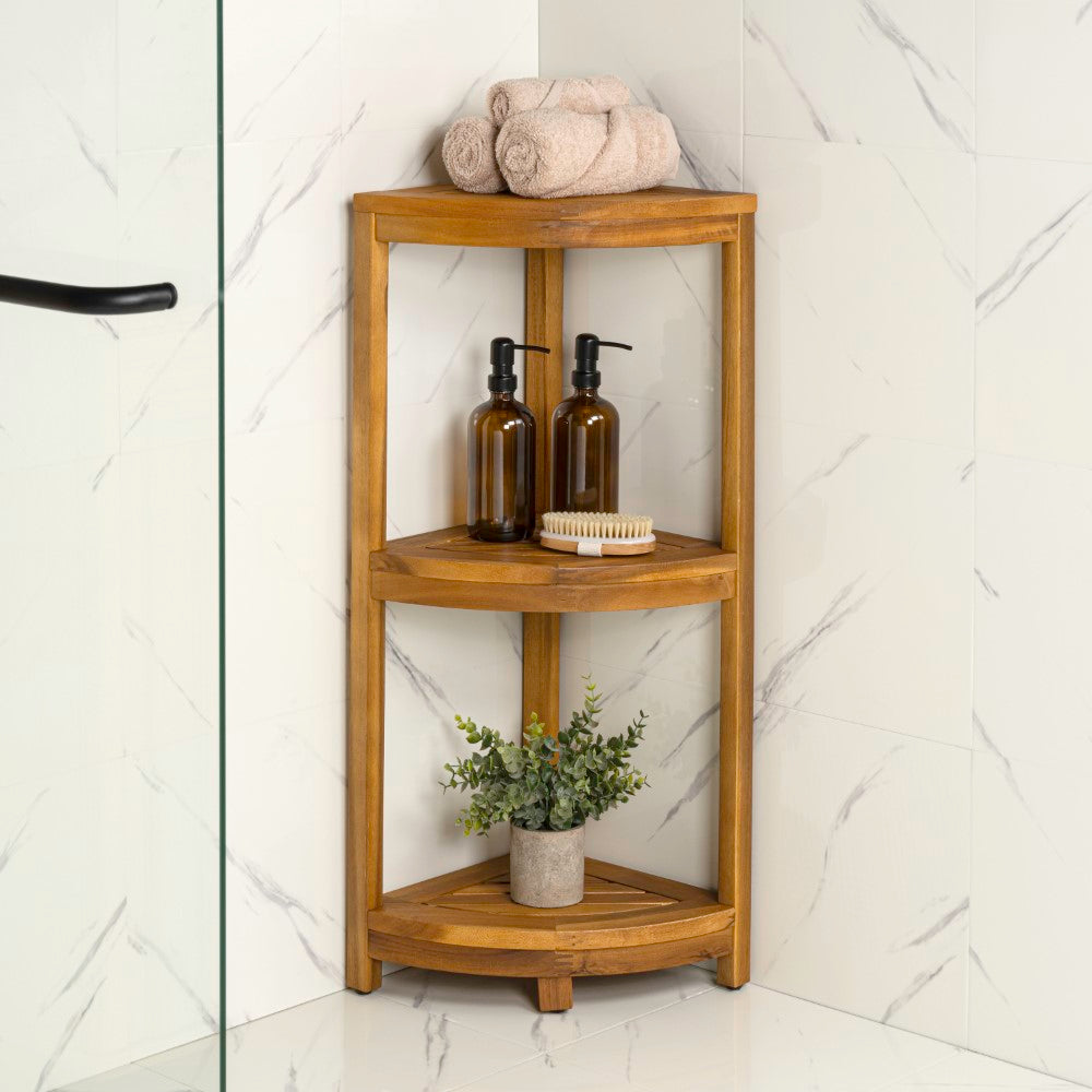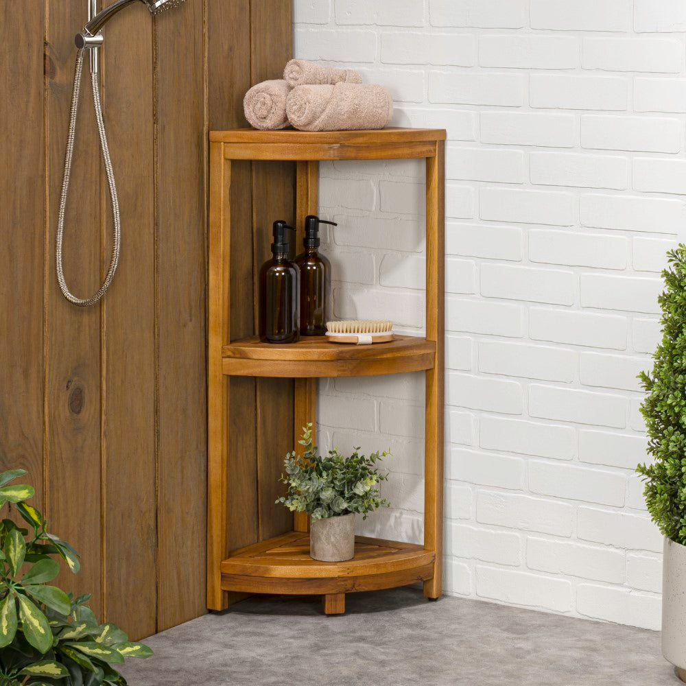 This classic 3-tier shelf fits easily into any corner, adding storage to small spaces. The quarter-round design is made from water-resistant acacia wood with a protective oil finish. Set this minimalist shelf in the shower, beside the tub, or use it as a plant stand indoors or outdoors.