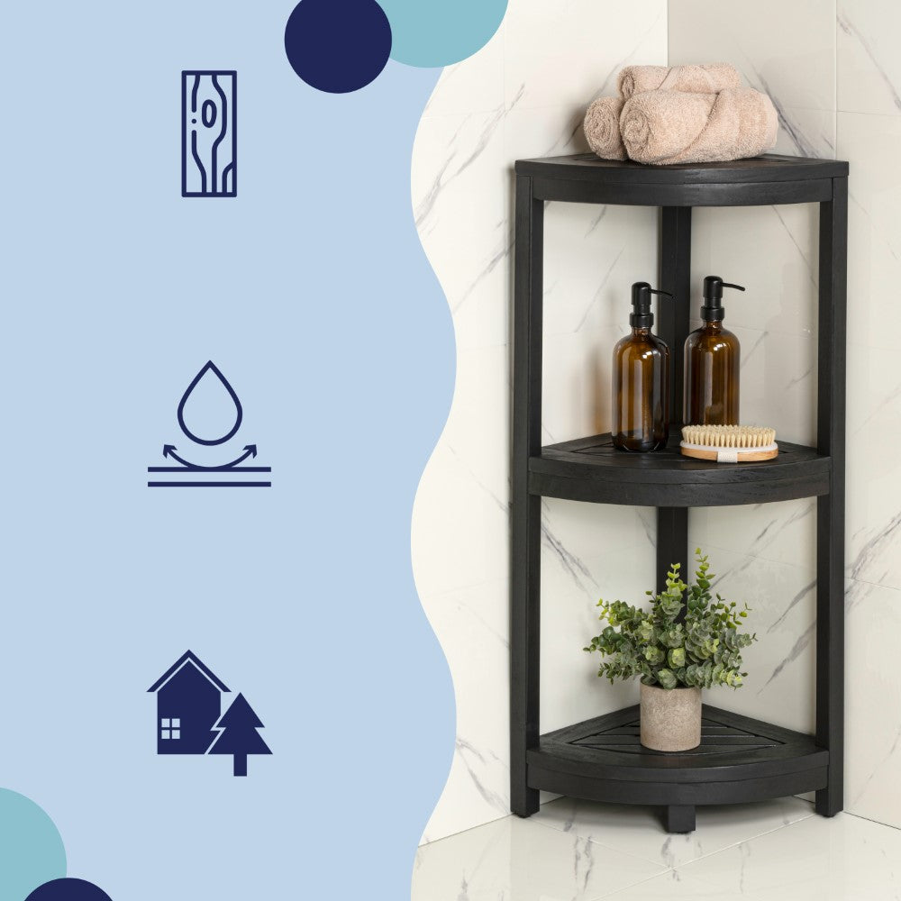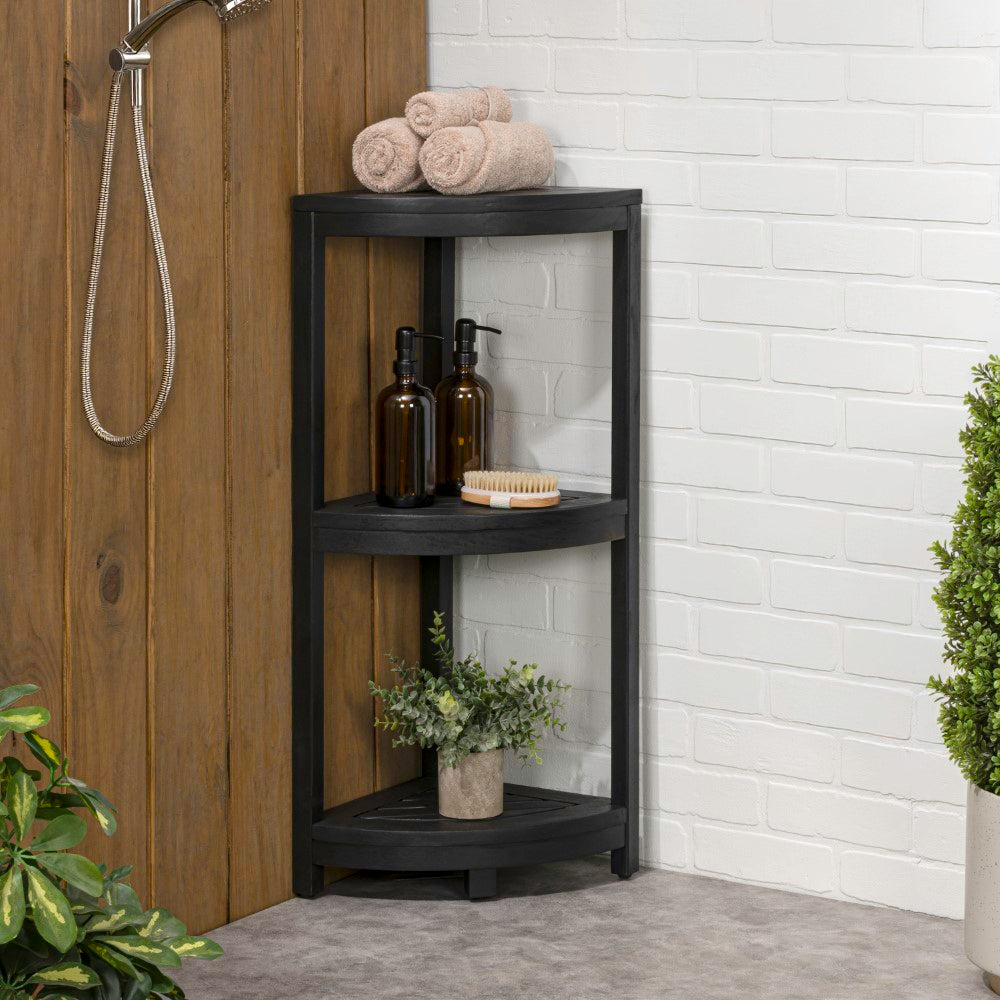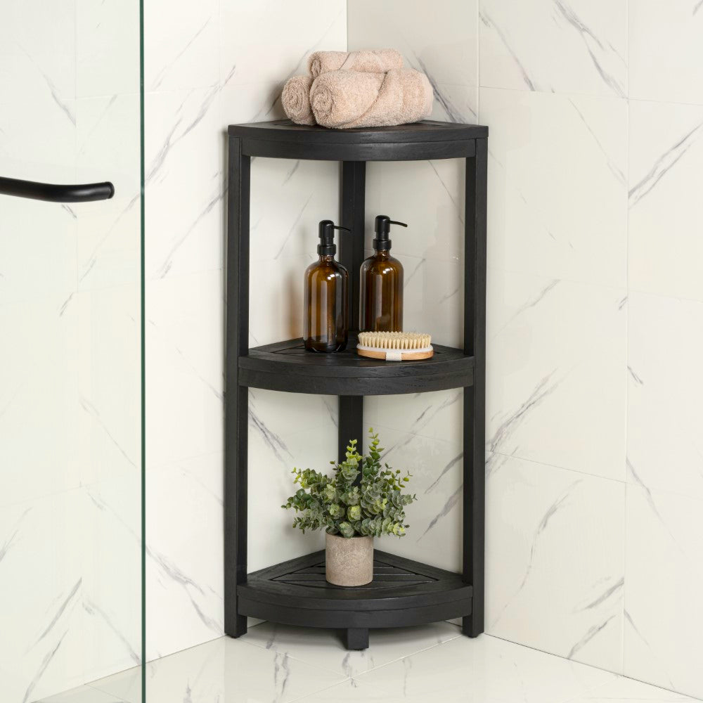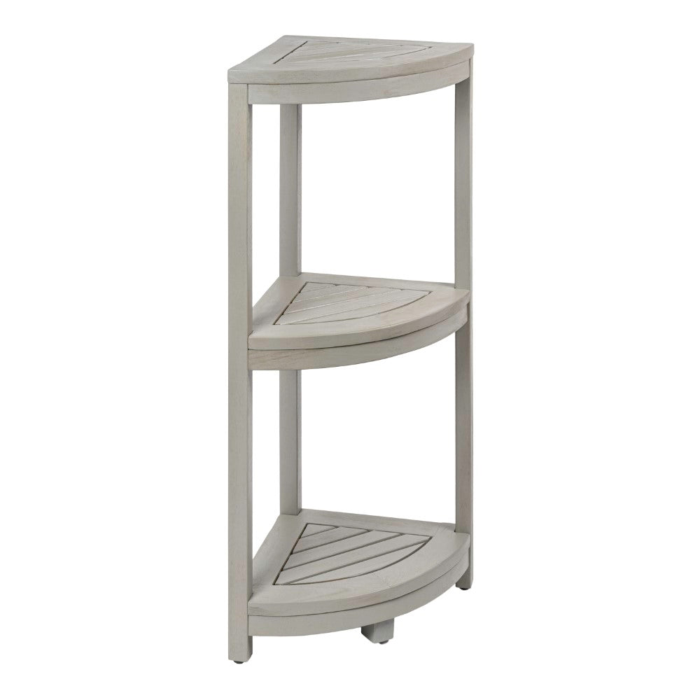 This classic 3-tier shelf fits easily into any corner, adding storage to small spaces. The quarter-round design is made from water-resistant acacia wood with a protective oil finish. Set this minimalist shelf in the shower, beside the tub, or use it as a plant stand indoors or outdoors.