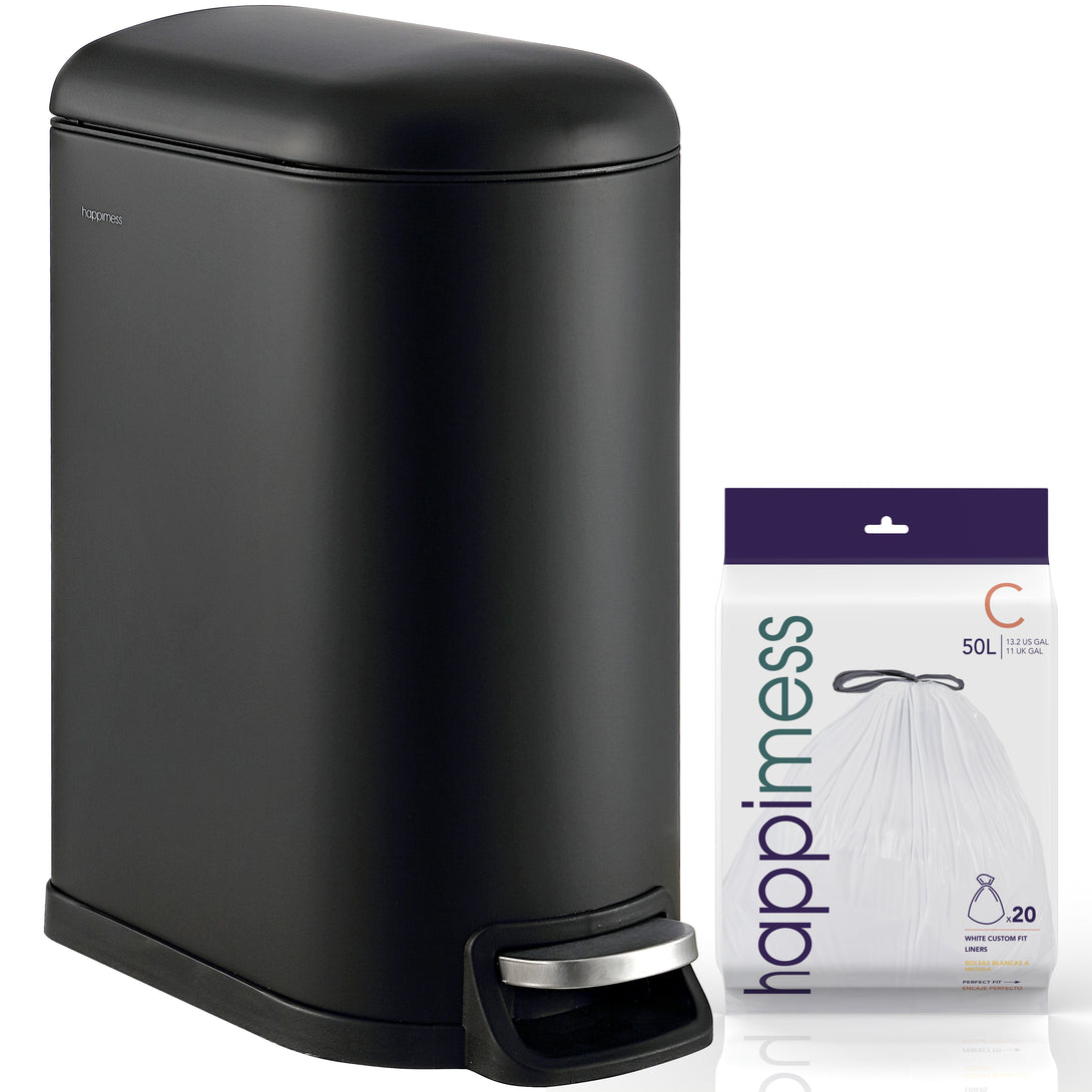 - Hands-free step pedal with a built-in damper to gently lower the lid