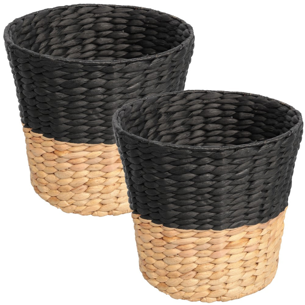 Toby Contemporary Bohemian Two-Tone Handwoven Water Hyacinth 3.1-Gallon Tapered Round Wicker Watebasket